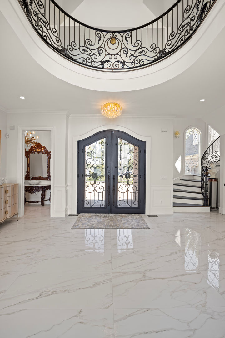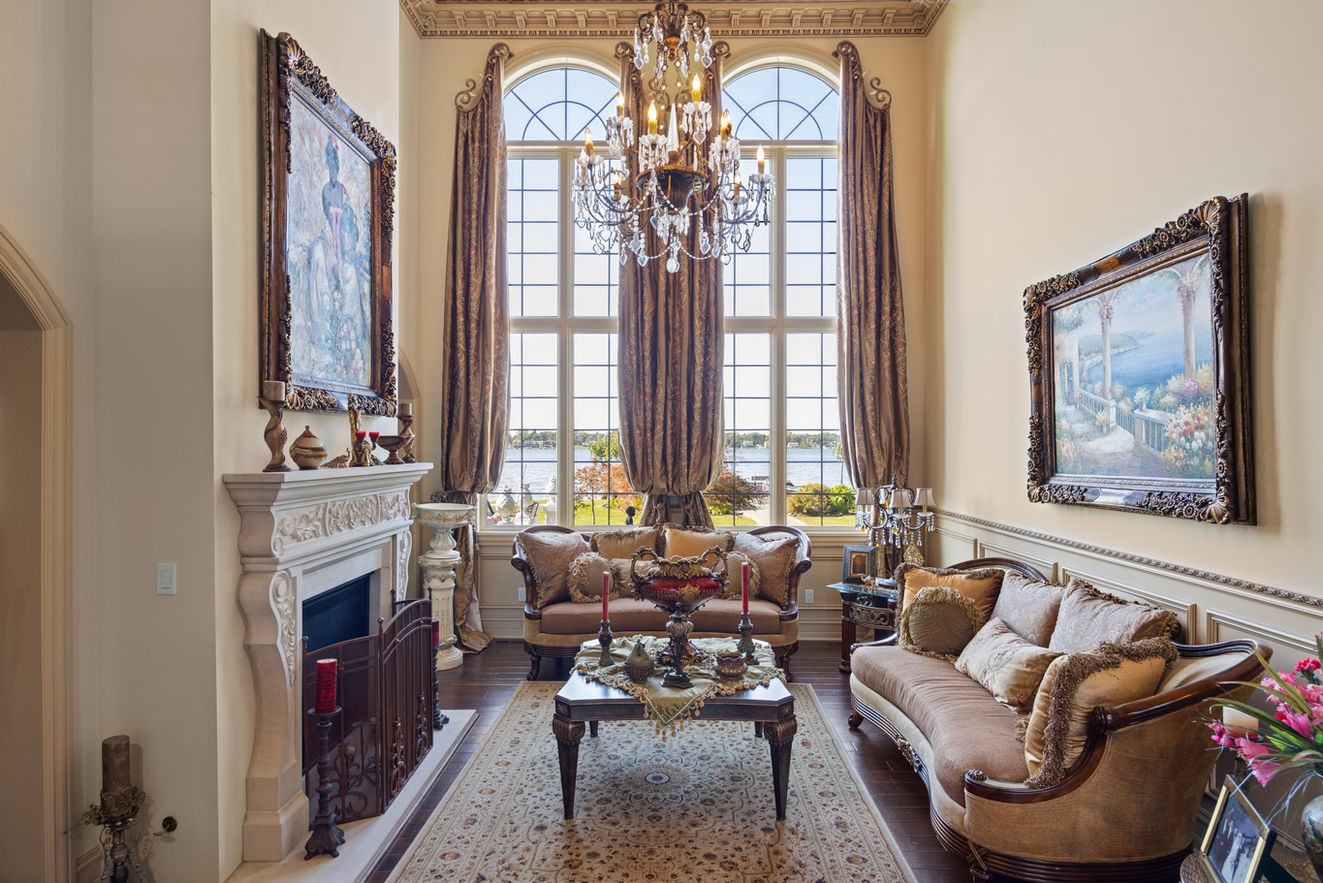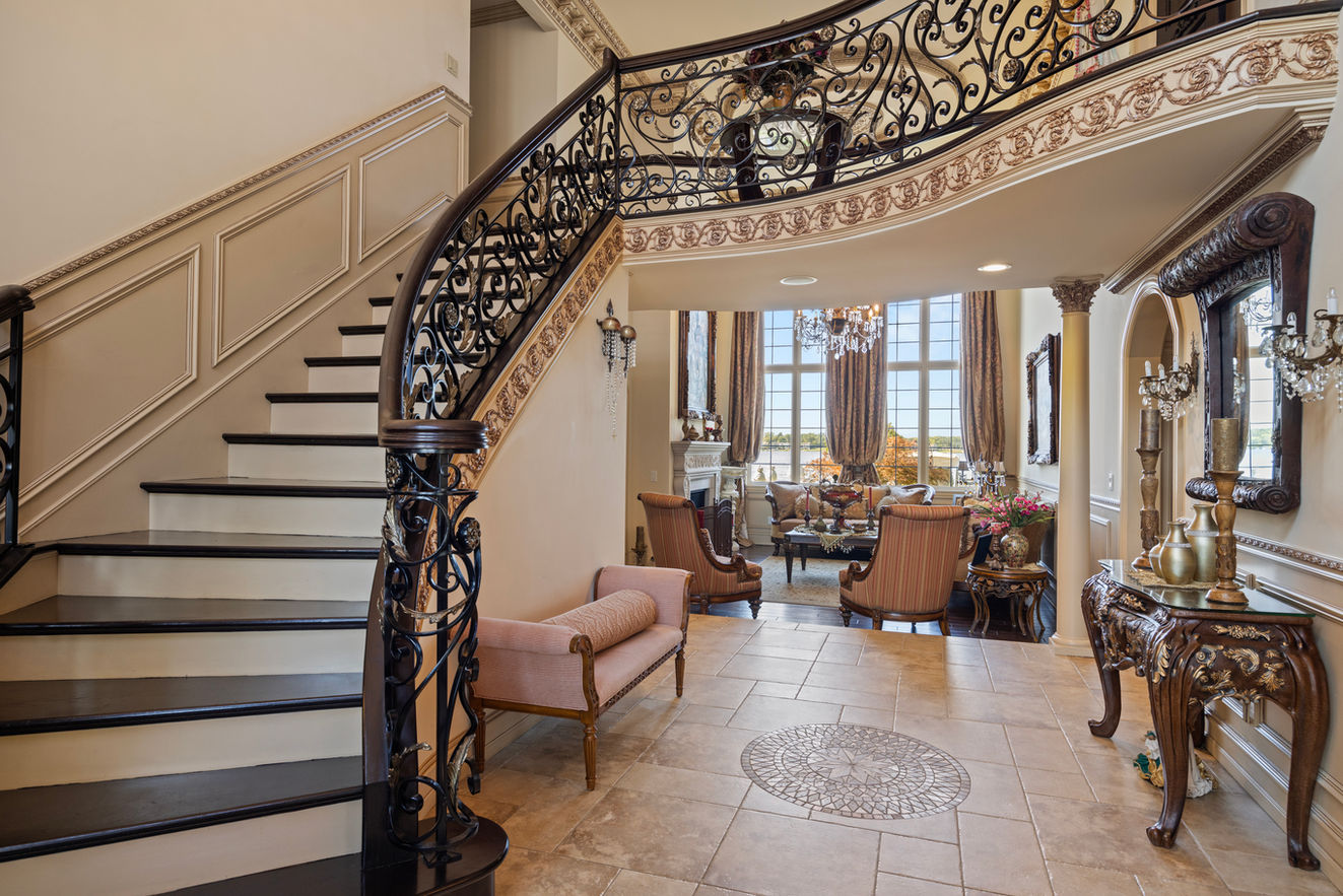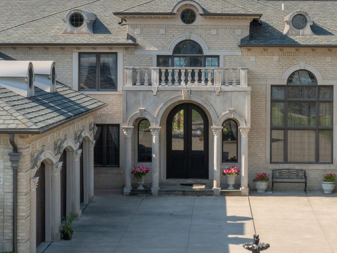 This home that blends history and craftsmanship, showcasing traditional castle designs. The stone and brick facades are complemented by deep European trim creating a sophisticated and inviting atmosphere.